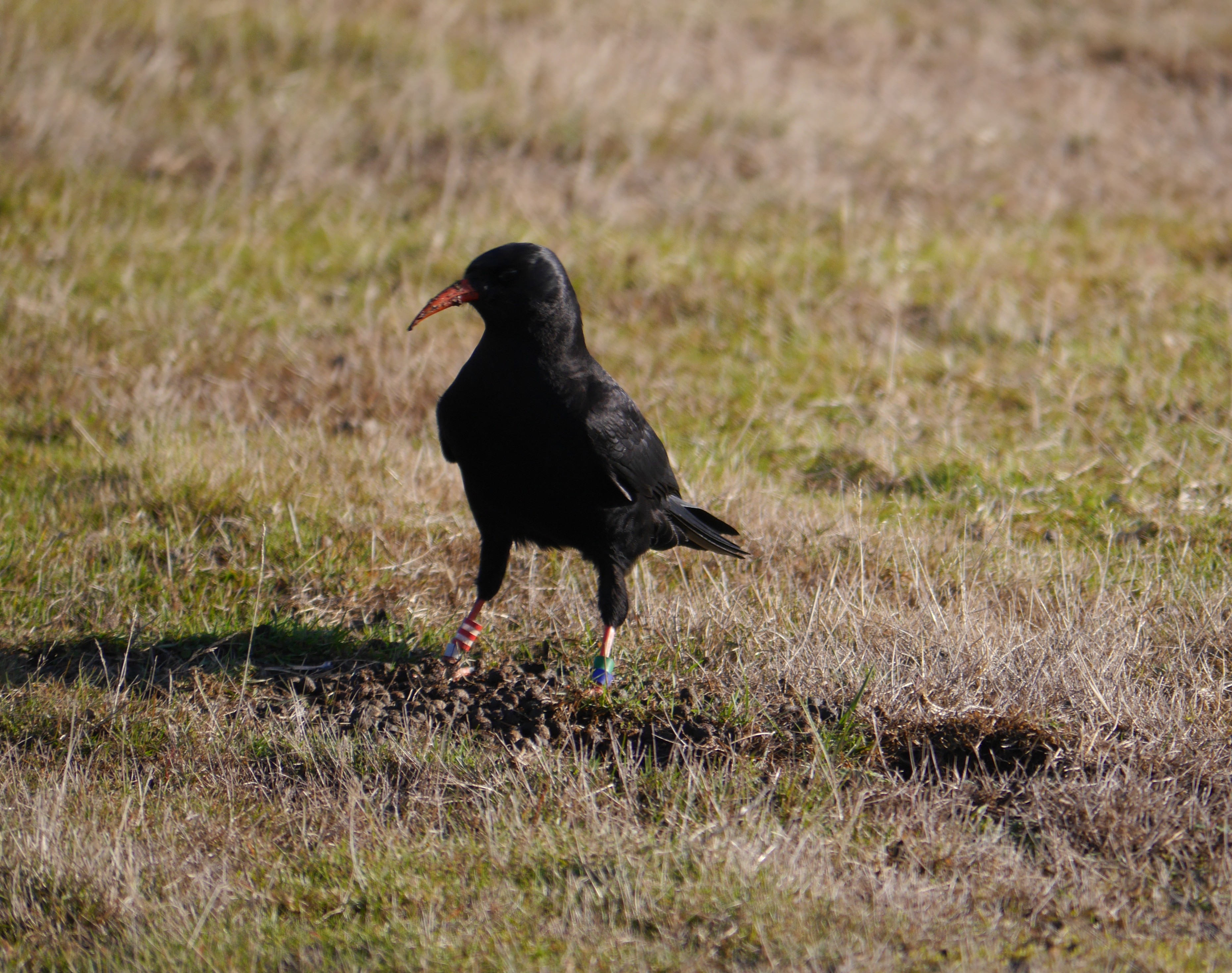 P1470585 Published November 16, 2014 at 3720 × 2937 in Chough report: October 2014 Bean’s bill a tell tale sign hat the choughs are probing for insects. In this case in the sheep feaces. Photo by Liz Corry